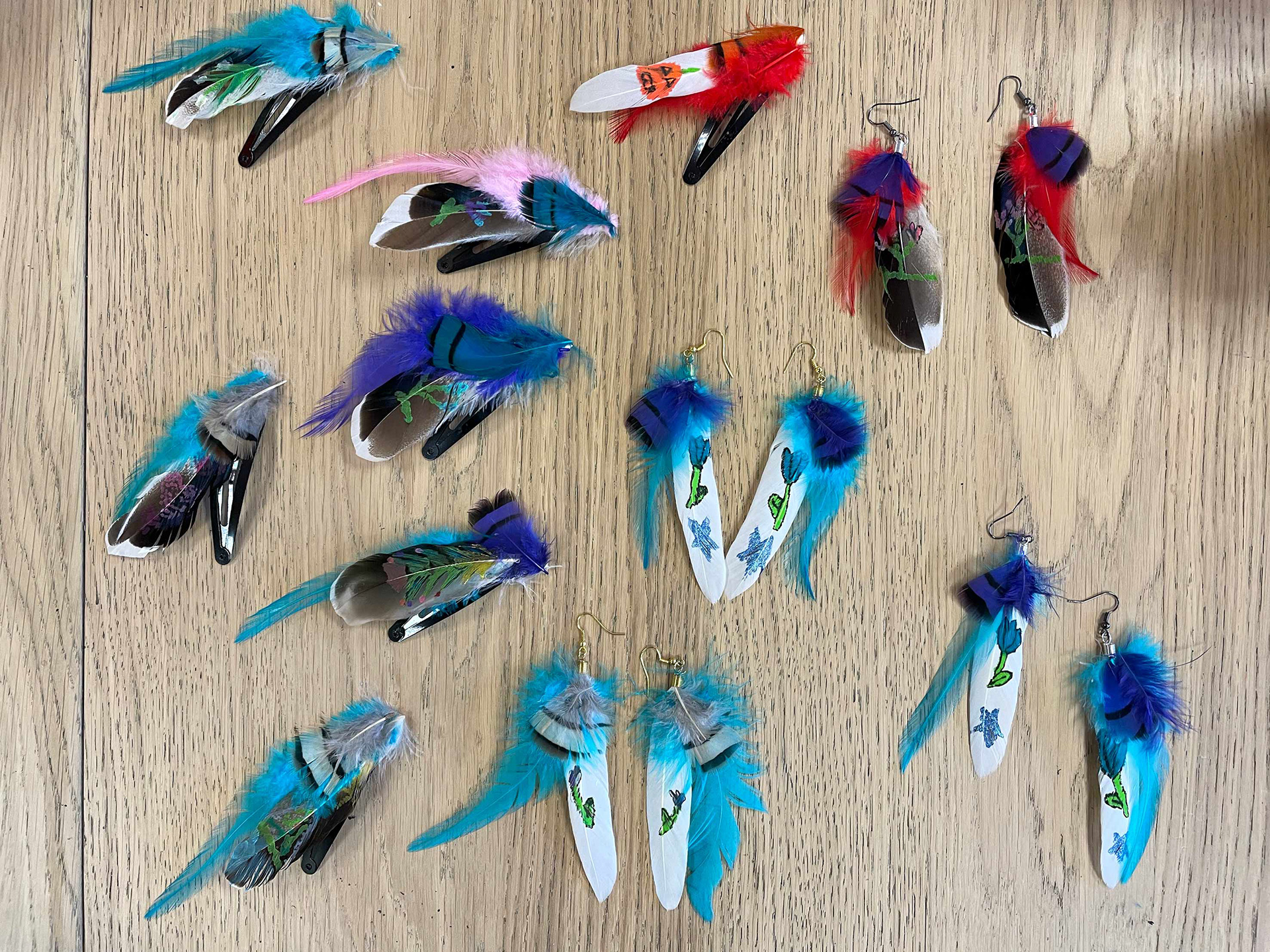 Des projets originaux et plein de fraicheur pour ce stage peinture sur plumes dans mes locaux !